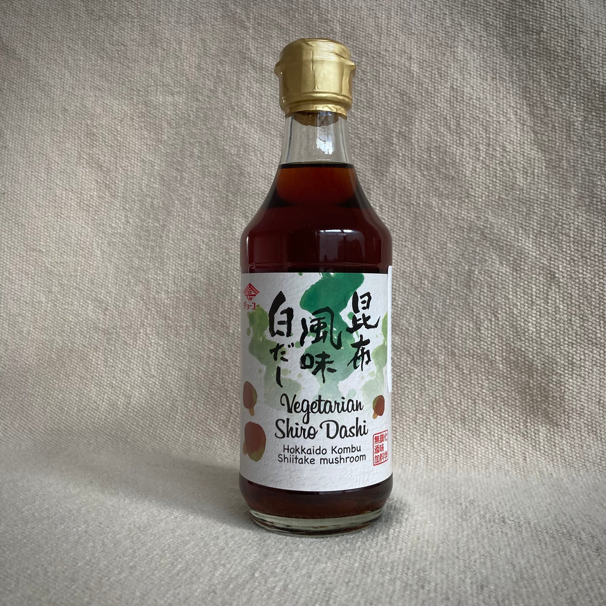 Producenten Choko syouyu kombinerar Kombu-alger från Hookaido med shiitake-svamp och finstämd soja till en kraftfull vegansk dashi. Fullproppad med havstoner och umami.