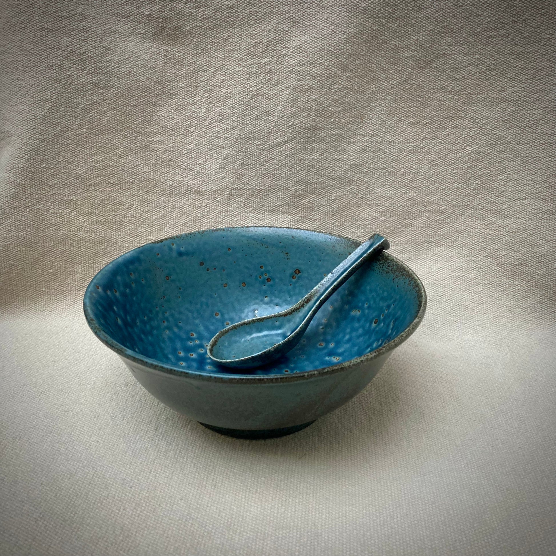 Ramenskål med sked - Blå - "WABIKONNEZ"