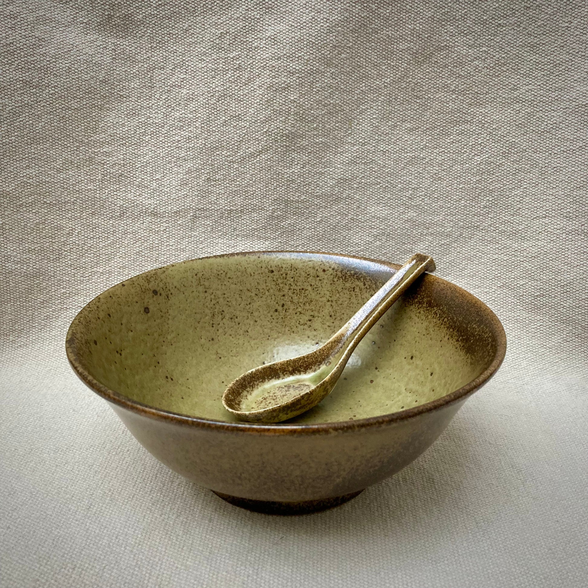 Ramenskål med sked - Brun - "WABIKUCHIHA"