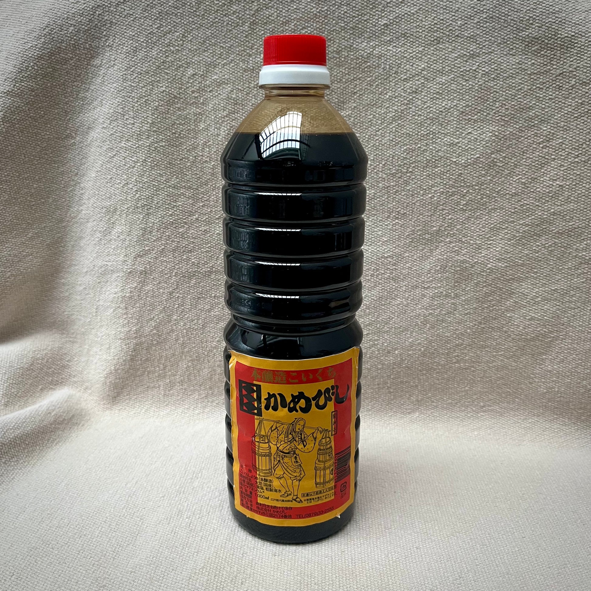 Producenten av den här sojan heter Kamebishiya och återfinns i Kagawa-perfekturen i Japan. I det här familjeföretaget har man producerat soja på ett traditionellt sätt sedan 1753 och medan alla andra producenter av sojaprodukter numera gått över till moderna tekniker fortsätter Kamebishiya envist att producera sin produkter på samma sätt som man gjorde för 250 år sedan (Mushiro Koji). Ångkokta sojabönor, krossad vete och Koji-kin (möglesvamp) läggs på en bädd av bambu och ristrån i rum där värme och fuktighet är noga kontrollerade. Efter tre dygn läggs blandningen i tunnor tillsammans med saltat vatten där den får ligga och fermentera i minst två år innan den tappas upp på flaska